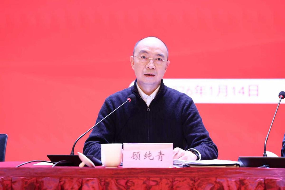 顾纯青作总结讲话。他充分肯定了2025年学校各项工作取得的成绩,并结合刚刚闭幕的2026年全国教育工作会议精神,围绕会议部署的八项重大任务紧密结合学校发展现状,深入剖析了当前职业教育发展面临的新形势、新任务。他指出,从国家“十五五”宏观布局,到《教育强国建设规划纲要(2024—2035年)》的蓝图指引,再到“新双高”理念的实践要求,一系列国家顶层战略为新时代职业教育改革与发展注入了强劲动力,也提出了更高要求。学校目前正处于蓄势突破、厚积薄发的关键阶段,必须增强机遇意识,科学研判、超前布局,着力在推进科技创新与成果转化、人工智能赋能教育教学、学校治理数智化转型、教师队伍结构性优化、国际化办学水平提升等方面下苦功、求突破,不断增强关键办学能力,在时代变革中精准锚定高质量发展航向。