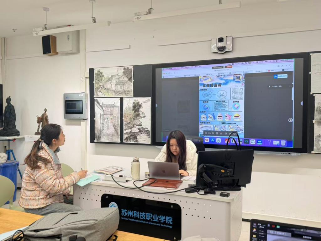 各实训项目紧密对接行业需求,融入商用设计逻辑与实践标准,将企业真实工作流程同步植入教学各环节。“我们要的不是‘学生作业’,而是能对接市场需求的文化产品。”在虚拟园林数字化复原项目中,数字媒体艺术设计专业朱晓莉老师以“苏州文化数字化传承”为核心主题,邀请企业技术专家深度参与教学指导。