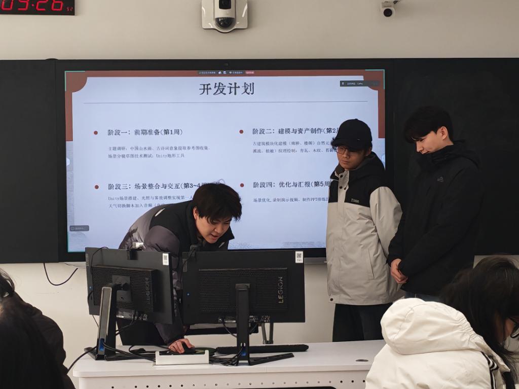 以寒山寺为蓝本创作的《姑苏揽梦·云涧竹水庭》,运用Unity引擎构建数字场景,融入语音讲解、交互式弹窗等设计,实现了传统文化在虚拟空间中的沉浸式传播。“企业导师教会我们,数字化项目不仅要还原形态,更要考虑用户体验与落地可能,这让我们对‘产品思维’有了真切体会。”参与学生表示。