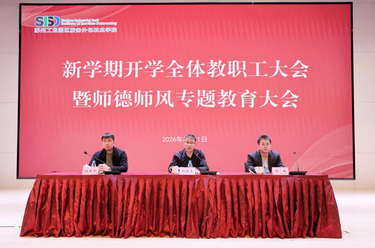冯瑞系统回顾了过去一年学校在教育教学、科研、师资队伍建设、校企合作等方面取得的显著成效,并明确了2026年度重点工作思路。他指出,新的一年,要坚持以“双高计划”建设与新一轮办学评估为关键抓手,全面推进内涵式发展。要聚力完成省“双高”计划项目验收工作,力争在核心教材、精品课程、科研平台及高水平团队建设上取得突破;要前瞻部署新一轮迎评工作,持续深化产教融合、校企合作,建设引领区域发展的优势专业群与战略性新兴产业微专业,建强产教融合实体与智库平台;要夯实师德师风建设,关心关爱教职工,共同打造温馨和谐的幸福家园。