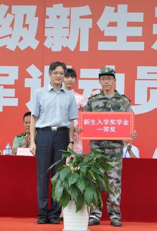 王颖宣读了新生入学奖学金名单,共有28名成绩优异,专业突出的同学获得了奖学金。沈坚为一等奖学金获得者信息工程学院朱荣荣同学颁奖;严世清、商学院院长李瑞丽共同为徐庆庆、郭勤雨等11名商学院新生颁发了二等奖学金;王颖、信息工程学院院长伏玉琛共同为李煜、郭佳丽等8名信息工程学院新生颁发了二等奖学金;丁志卫、人文艺术学院院长王於中共同为李健、周丽丽等7名人文艺术学院新生颁发了二等奖学金;冯瑞、纳米科技学院副院长丁慧洁共同为席可、王海天等4名纳米科技学院新生颁发了二等奖学金。