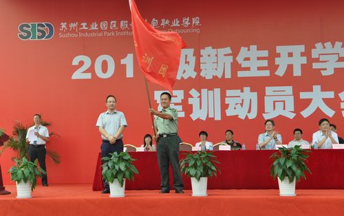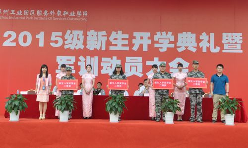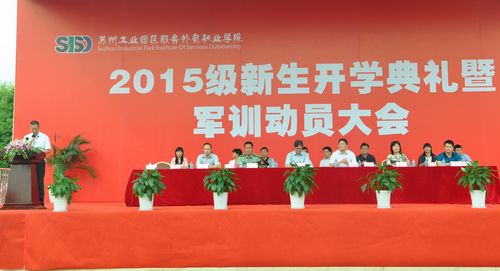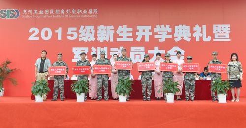 9月14日上午,我院2015级新生开学典礼暨军训动员大会在学院体育场举行。园区教育局局长沈坚,本次军训团团长、承训部队教导员袁露,我院党委书记、院长严世清,常务副院长王颖,党委副书记副院长丁志卫,副院长章亦华,副院长冯瑞,各中心、各二级学院负责人,新生辅导员、班主任以及2015级1703名新生参加。典礼由章亦华主持。