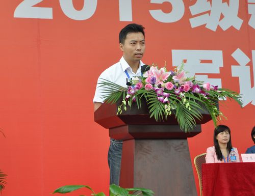 商学院班主任卢啸虎老师作为教师代表发言,他希望同学们尽快适应大学环境,实现角色的转变;把有限的时间、精力投入到学习中去,为实现人生价值打下坚实的基础;要有感恩之心,有爱心,有荣誉感,明辨是非,做一个正直的人。