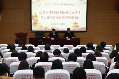 为纪念改革开放四十周年,更好地学习贯彻全国教育大会精神,12月17日下午,我校在槎轩楼D103报告厅举办了学习贯彻全国教育大会精神专题讲座,邀请了苏州大学党委书记江涌为我校教职工作了题为《学习贯彻全国教育大会精神、推动高等教育事业高质量发展》的宣讲,对习近平总书记在全国教育大会上的重要讲话精神进行了解读,我校党委书记、校长严世清,常务副校长王颖,党委副书记、副校长丁志卫,副校长冯瑞及全体教职工参加了此次讲座。