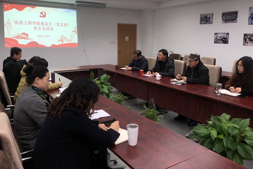 12月27日上午,我校信息工程学院党总支在至能楼F511会议室召开了2018年度民主生活会,学院总支班子成员、支部班子成员参加了会议,学校党委委员丁志卫出席会议,会议由学院党总支书记刘正主持。