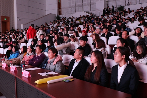 丁志卫在致辞中点赞改革开放40年国家建设发展取得的辉煌成就,希望同学们砥砺家国情怀、笃行报国之志,努力在实现中华民族伟大复兴中国梦的生动实践中放飞青春梦想。