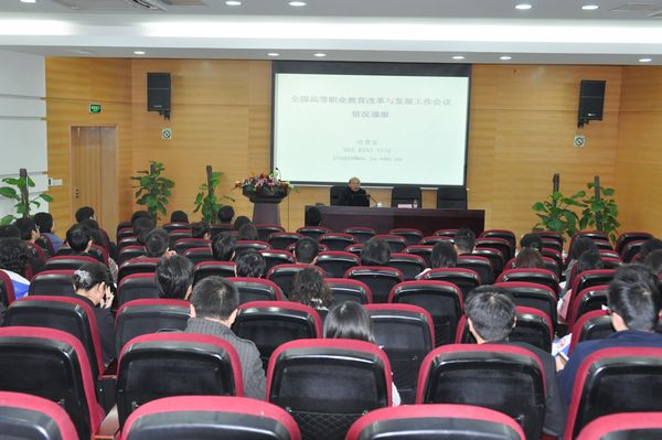 经处长首先简要介绍了全国高等职业教育改革与发展工作会议召开的概况和特点,随后传达了七点会议精神:努力建设世界水平、中国特色、现代高等职业教育;准确把握高等职业教育的战略发展思路;坚持科学的办学定位;加快体制机制创新;加强教师队伍建设;加大财政经费投入;抓好重大项目和改革试点工作。随后,他采用对比的方式对国家及江苏省高职教育的中长期发展目标及战略构想进行了讲解,并着重从基础与背景、指导思想和发展目标、主要任务、重点举措及组织实施等几个方面将事关高职教育改革、发展、创新的重大命题进行了重点解读和分析。经处长的报告高屋建瓴,为大家勾勒出一幅定位准确、目标具体、任务明确、路径清晰的高职教育未来图景,使大家对国家及我省高职教育发展规划形成了较为全面而清晰的认识。