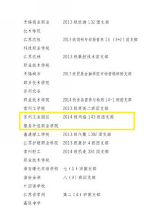8月26日,共青团江苏省委公布了2015年全省大中专学校“魅力团支书、活力团支部”风采展示评选活动获奖结果,我校信息工程学院网络143班团支部荣获“江苏省活力团支部”称号。