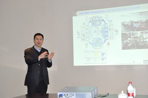 之后,杨冬院长、王颖副院长与林峰总经理就双方合作进行了深入交流。杨冬院长介绍了我院的整体办学情况,林峰总经理介绍了SAP公司未来五年的发展规划以及SAP教育培训发展概况,他表示未来五年SAP顾问人员缺口将达到1500万人。双方还就授权在学院建立SAP培训中心、在学院建立中国第一个SAP实训基地、在今年12月份共同开展SAP在苏州地区的品牌推广和培训活动等多项事宜达成了一致意向。我院能够与世界一流的软件公司SAP达成合作,建立实训基地,共同培养人才将提高我院的办学声誉,并为学生提供更高更广阔的发展平台。