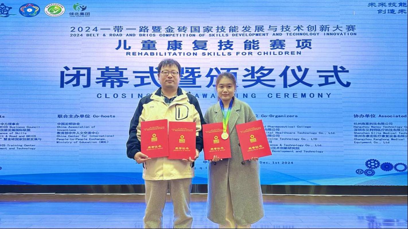 围绕孤独症领域,学校培养了一批具有创新创业能力和大爱意识的学生,荣获2024年度中美青年创客大赛全国总决赛二等奖、2024“一带一路”暨金砖国家技能发展与技术创新大赛儿童康复技能赛项全国总决赛二等奖等荣誉。