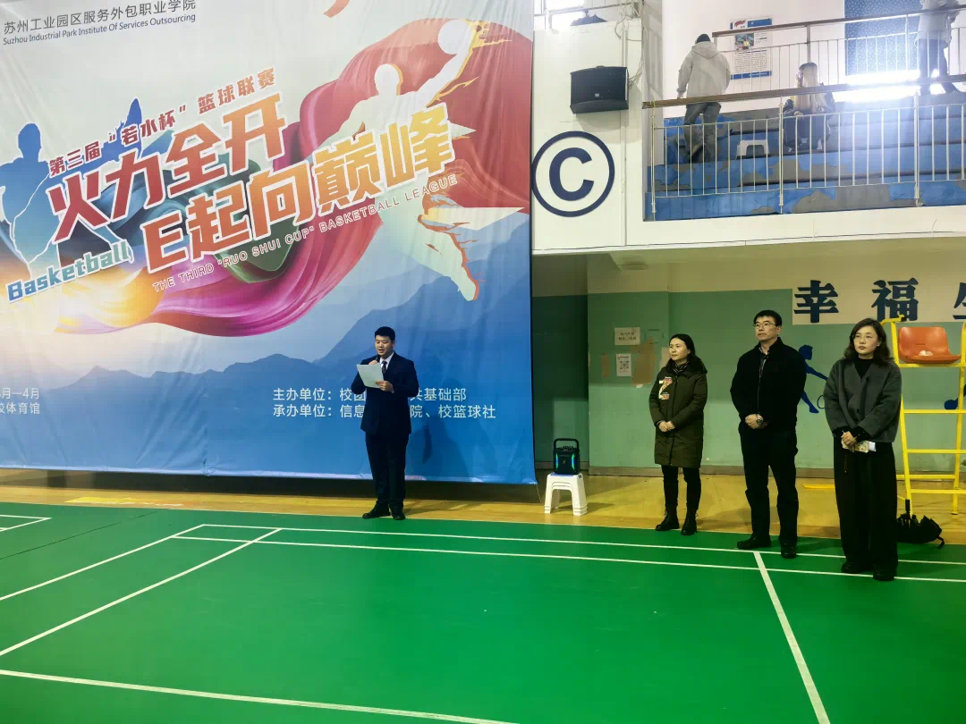 3月12日下午,我校“E起向巅峰”第三届“若水杯”篮球联赛在校体育馆开幕。大赛由团委、公共基础部主办,信息工程学院、校篮球社承办,我校副校长杜梓平,团委书记李晓鸥,信息工程学院党支部副书记、副院长张趁香参加本次开幕式。