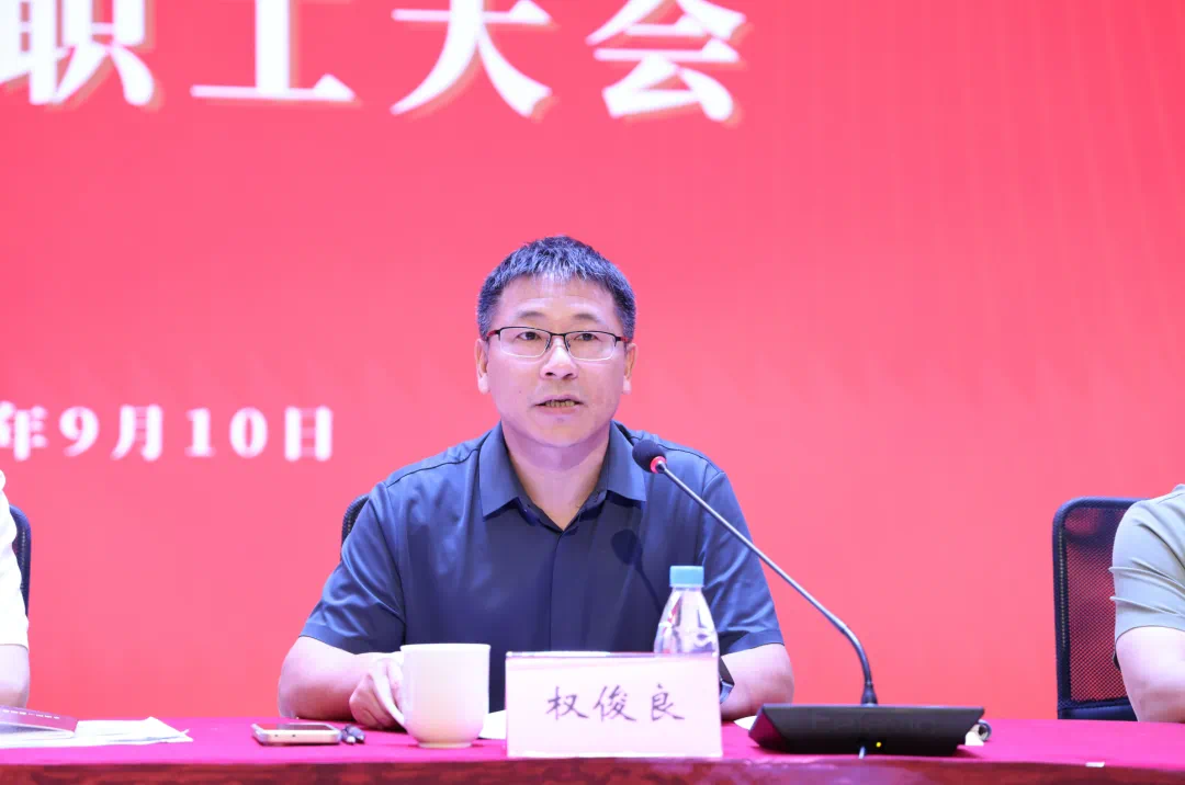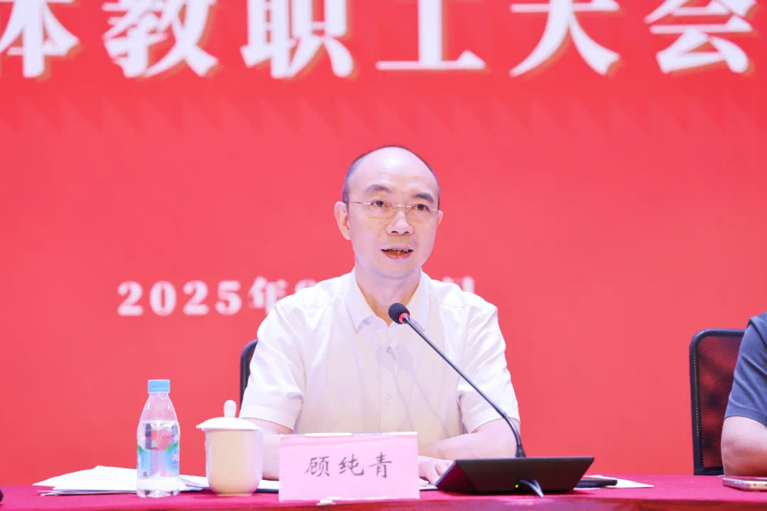 9月10日下午,我校在闻道楼二楼报告厅召开2025年秋季学期全体教职工大会。学校党委书记顾纯青,党委副书记、校长权俊良,副校长丁志卫、冯瑞、杜梓平及全体教职工参会。会议由校长办公室主任赵强主持。