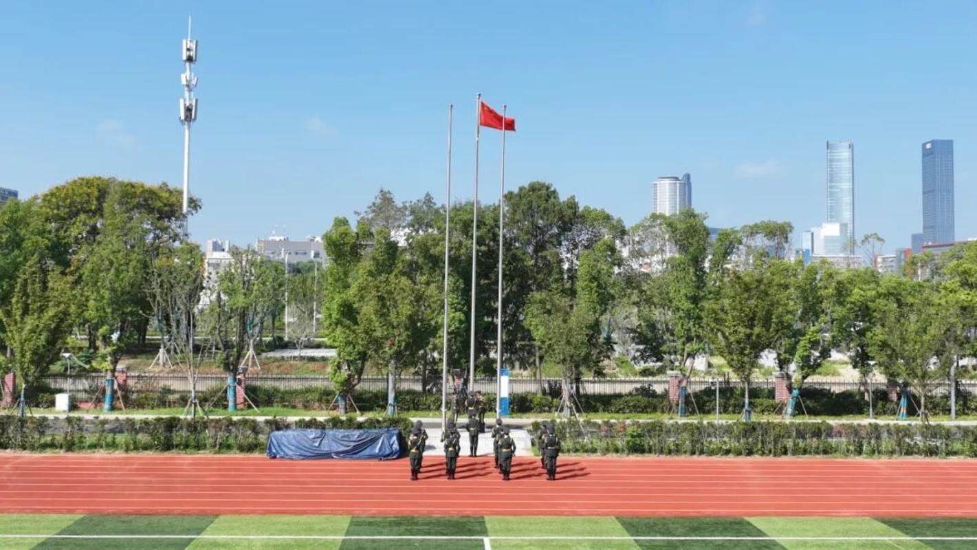 典礼现场气氛热烈。2025级新生身着统一迷彩军训服,精神抖擞,意气风发。全体参训人员集结完毕后,权俊良发出了大会“开始”的号令。随后,大会举行了庄严的升旗仪式。国旗护卫队步伐整齐、铿锵有力护送国旗至升旗台。在雄壮嘹亮的国歌声中,全体肃立,向鲜艳的五星红旗行注目礼,奏唱国歌。