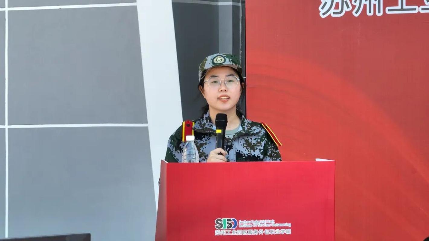 生物科技学院药质251班李鸿奕同学作为学生代表发言,她代表全体新生对新学期、新生活做出美好展望,用青春的话语分享了初心与目标,并表示将用汗水浇灌成长,用青春笃行逐梦,不负重托,不辱使命,圆满完成军训任务。
