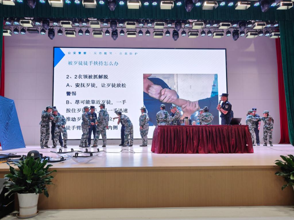 9月22日上午,我校2025级新生安全教育首场专题讲座在闻道楼报告厅举行。苏州工业园区公安分局巡特警教官吴颖达一行应邀为新生带来一场集专业知识讲解、实战装备展示和互动体验于一体的防暴安全专题讲座。此次活动由学校学生工作处(人武部)、后勤保卫处联合主办。