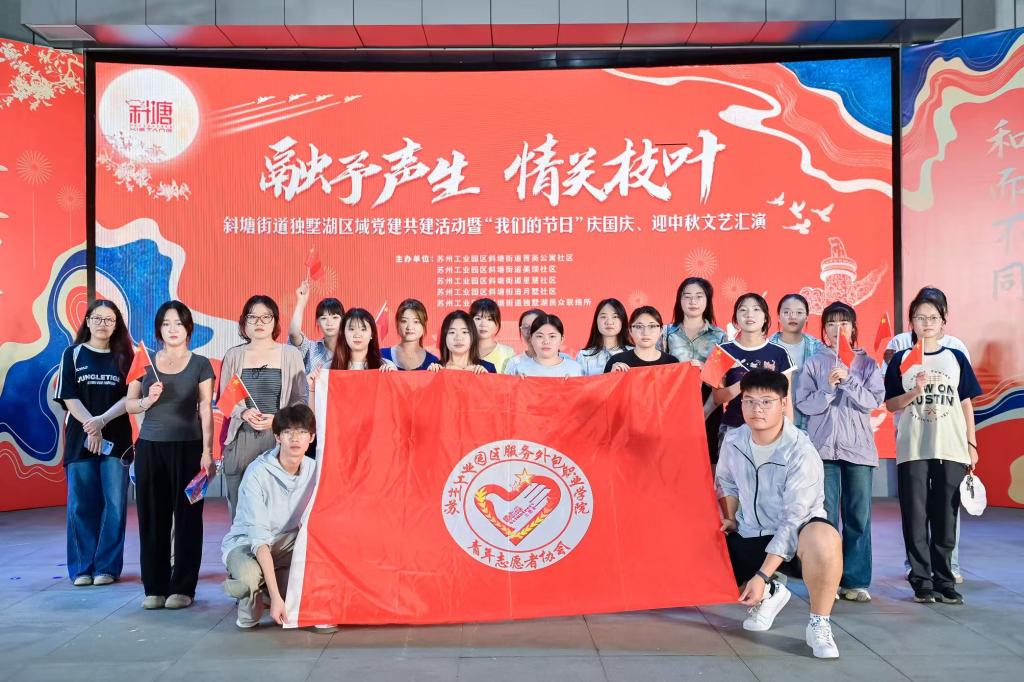 在斜塘街道“融予声生,情关枝叶”文艺汇演现场,我校青年志愿者协会的同学们以饱满的精神面貌亮相。他们既是晚会的服务者,也是双节欢乐氛围的营造者,用青春力量让党建共建活动与节日庆典交相辉映。