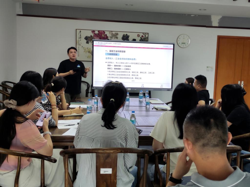 最后,穆牧对本次会议进行了总结。他用PPT形式详细解读了学校工会经费的来源情况以及使用要求,要求各分工会熟悉工会经费的相关政策以及具体使用方式,在制度要求范围内开展相关工会活动。