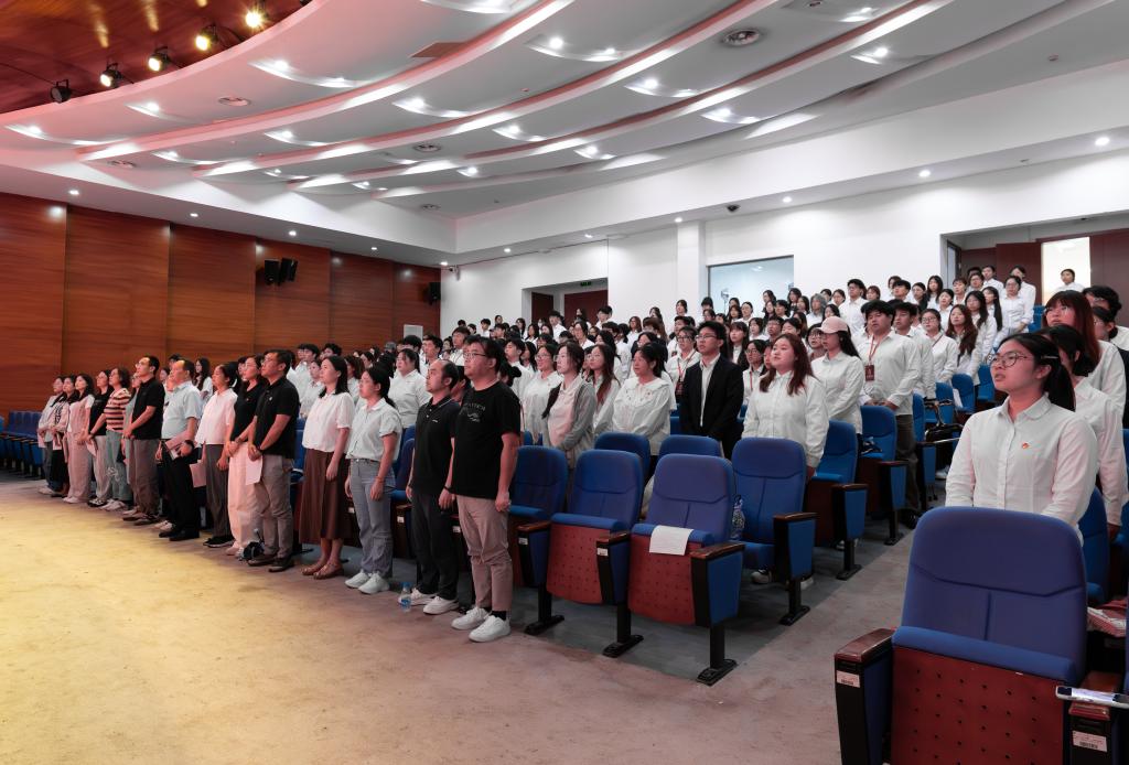 10月15日下午,我校“青马工程”骨干培训班2024-2025学年结业仪式暨2025-2026学年开班仪式在善仁楼影剧院举行。学校副校长丁志卫、党委办公室主任倪卓琳、马克思主义学院院长张建亮、团委书记李晓鸥,各学院党支部副书记、团总支书记,学校2024-2025学年及2025-2026学年“青马工程”骨干培训班学员,2025学年第二期业余团校学员共计300余人参加活动。仪式由团委副书记曹韦璇主持。