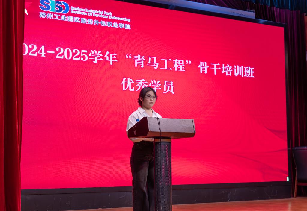 翟佳琦作为2024-2025学年“青马工程”骨干培训班优秀学员代表发言。她结合自身成长经历,讲述了在理论和实践上的收获与感悟,鼓励新学员们珍惜学习机会、勇敢锤炼自我,将个人理想融入国家发展大局,让青春在奉献中焕发光彩。