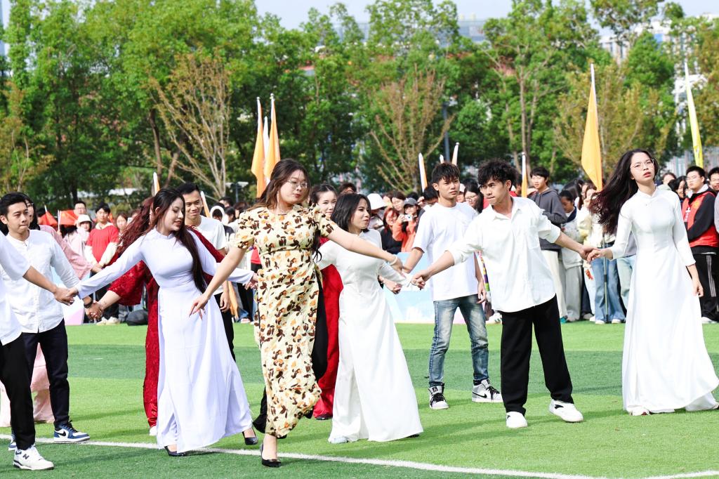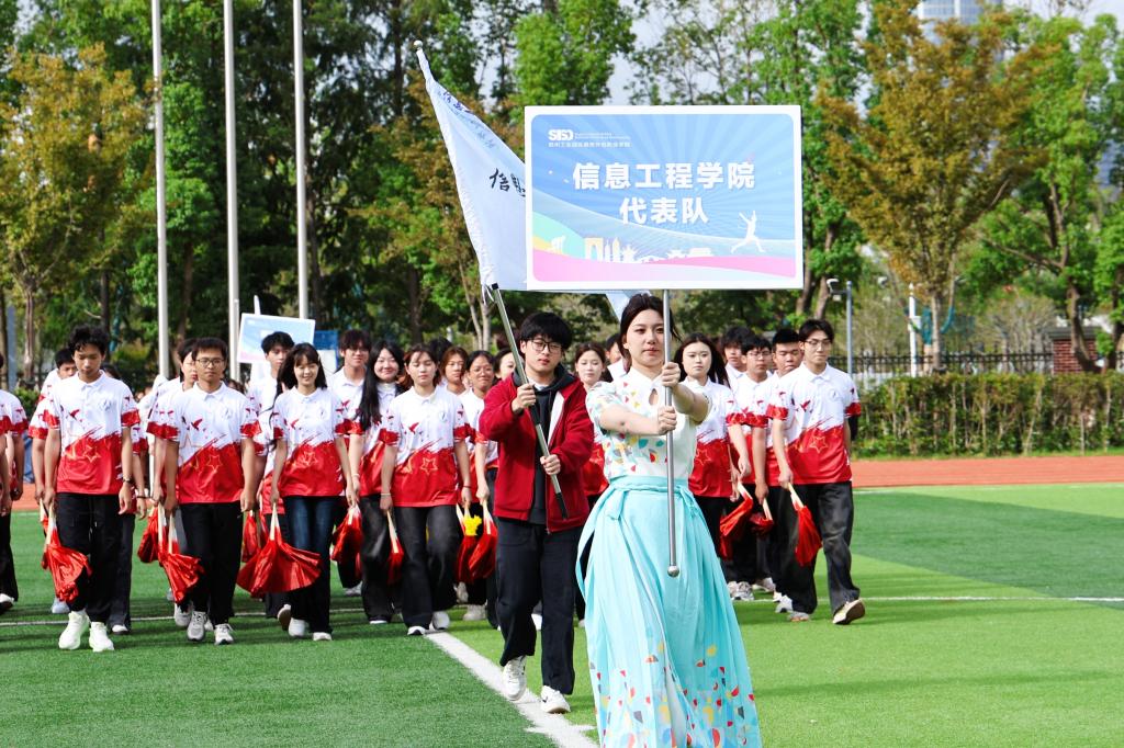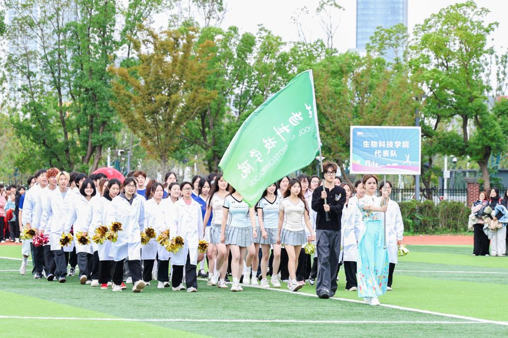随后,教工代表队、六大学院及国际学院代表队逐一亮相。教工运动员方阵步伐铿锵、神采奕奕,彰显了我校教职工昂扬向上的精神风貌;六大学院及国际学院学子方阵创意迭出,独特的队列造型、嘹亮的青春口号与精彩表演,既彰显学院专业底蕴,又尽显学子多才多艺、意气风发的青春活力,赢得现场阵阵掌声。