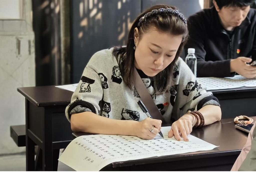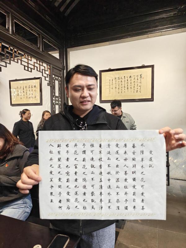 参观过程中,大家集中观看了廉政警示教育视频,一幕幕真实的案例、一句句沉痛的忏悔,为每一位党员干部敲响了警钟。活动还特别设置了廉洁主题书法环节。同志们挥毫泼墨,书写了“爱莲说”,在一笔一划的沉浸中进一步涵养廉洁心境,坚定廉洁信念。