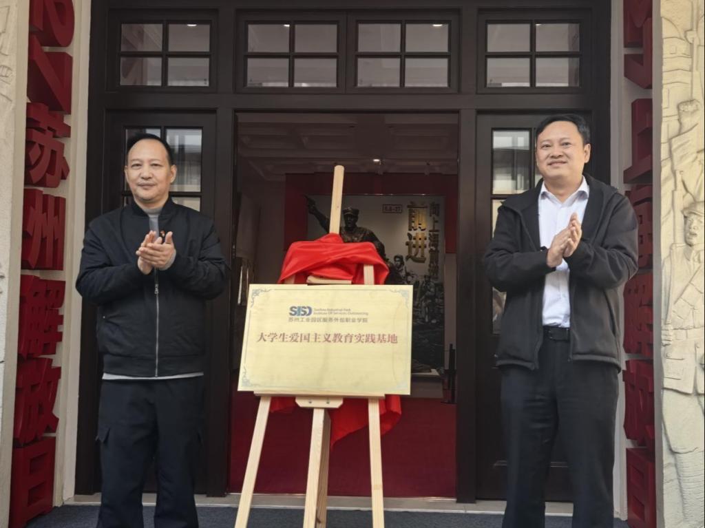 双方在上海战役指挥机关旧址内举行了党建共建签约与爱国主义教育实践基地挂牌仪式。我校副校长丁志卫与苏州古城投资建设有限公司党支部书记朱建国共同为“爱国主义教育实践基地”揭牌,标志着双方携手打造的红色育人平台正式落地,为后续常态化开展红色教育、学生实践奠定基础。
