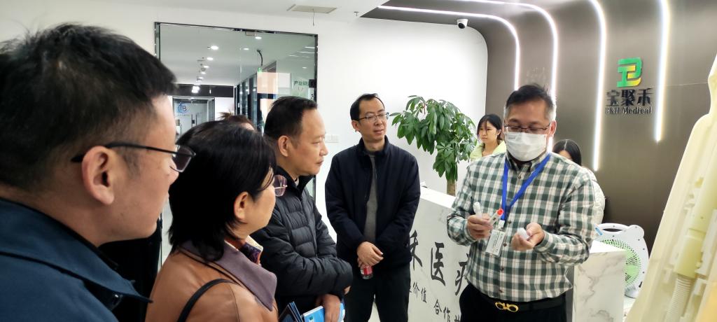 首站走访宝聚禾(苏州)医疗科技有限公司。公司总经理覃平详细介绍了企业发展历程、创新研发成果、企业文化及未来战略。随后,调研团队实地参观了实验室、研发项目及生产线,深入了解企业技术需求与人才应用场景。