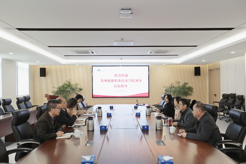 11月19日,苏州健雄职业技术学院党委委员、副院长吴建洪一行来访我校,双方就科研团队培养及考核机制、科研经费预算及使用管理、科研成果激励机制、财务保障机制等议题开展深入交流。我校党委委员、副校长冯瑞及相关部门负责人接待来访。