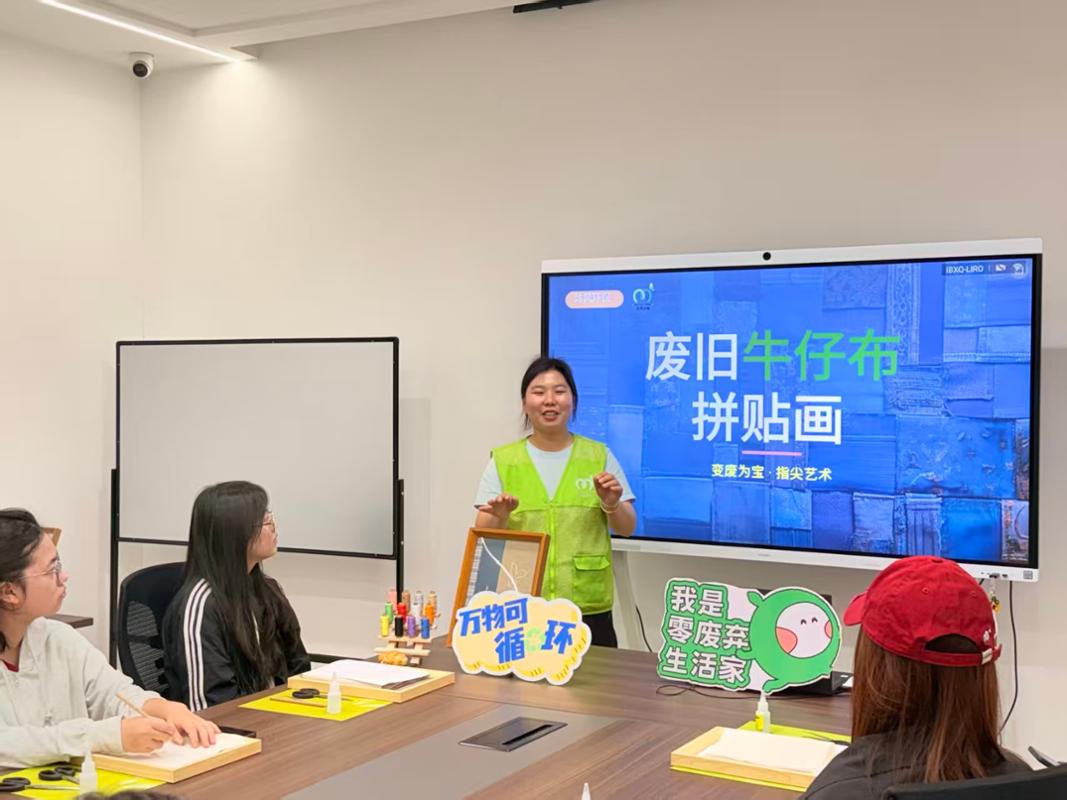 活动尾声,参与者将完成的拼贴画作品装裱入框,让闲置废旧牛仔布蜕变成为兼具观赏性与教育意义的环保艺术品。现场工作人员再次强调旧物改造在资源节约、生态保护中的积极作用,号召大家以实际行动传播绿色理念,带动更多人参与低碳实践、守护生态家园。