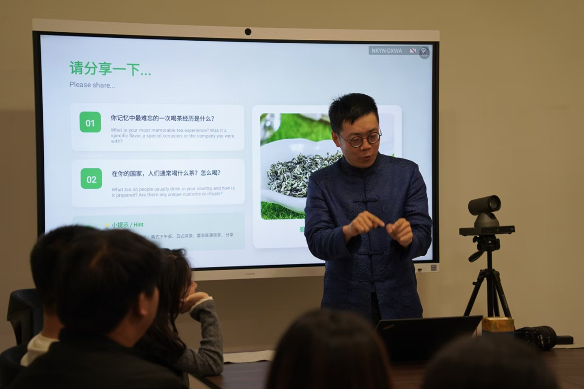 活动伊始,现场举行破冰交流环节。主持人围绕个人饮茶经历、日常饮茶习惯、中外饮茶习俗与特色茶文化等主题,组织学生进行分享互动。学生结合自身体验交流饮茶感受与地域饮茶习俗,增进相互了解,为活动开展营造规范有序、庄重雅致的现场氛围。