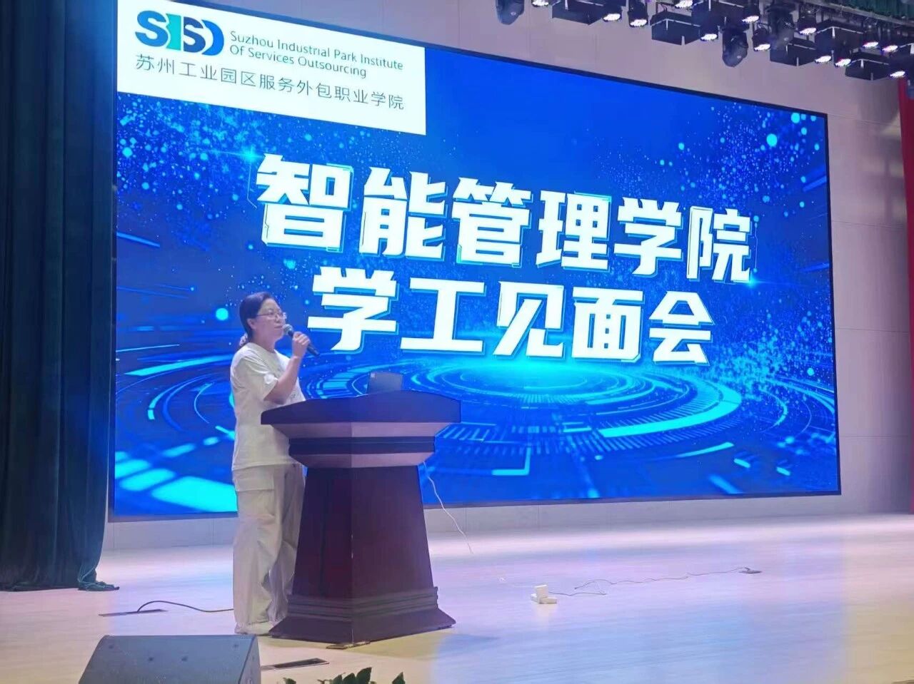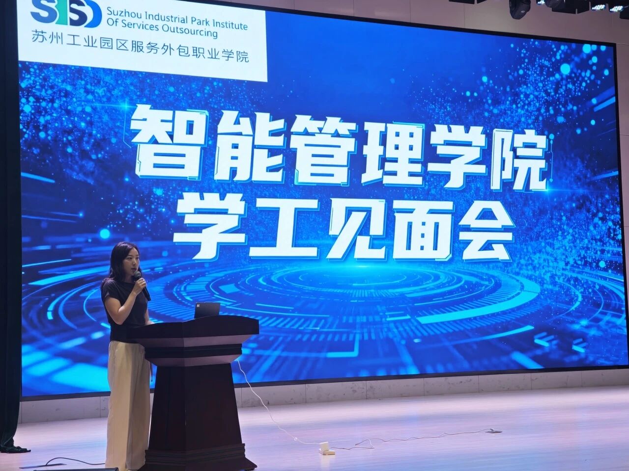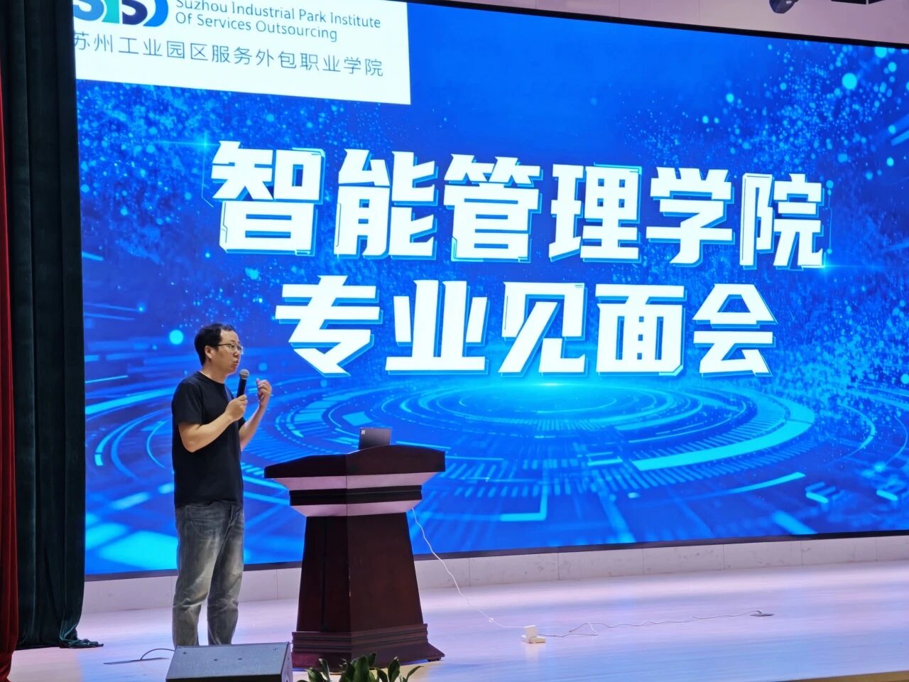 随后,各专业主任聚焦核心内容,为新生答疑解惑。嵌入式技术应用、物联网应用技术专业主任刘辉重点介绍了毕业设计的改革,强调专业培养与行业需求接轨,建议新生尽早积累项目经验;智能产品开发与应用专业主任陶文寅讲解了专业培养体系并给出就业建议,鼓励同学们关注行业动态、积极参与竞赛与实习;电子产品检测技术专业主任王燕解读了专业课程的优势,分享学习与就业要点,提醒同学们重视理论实践结合;智慧城市管理技术专业主任佘阳梓明确了专业培养的方向,以及关联智慧城市建设的相关需求。