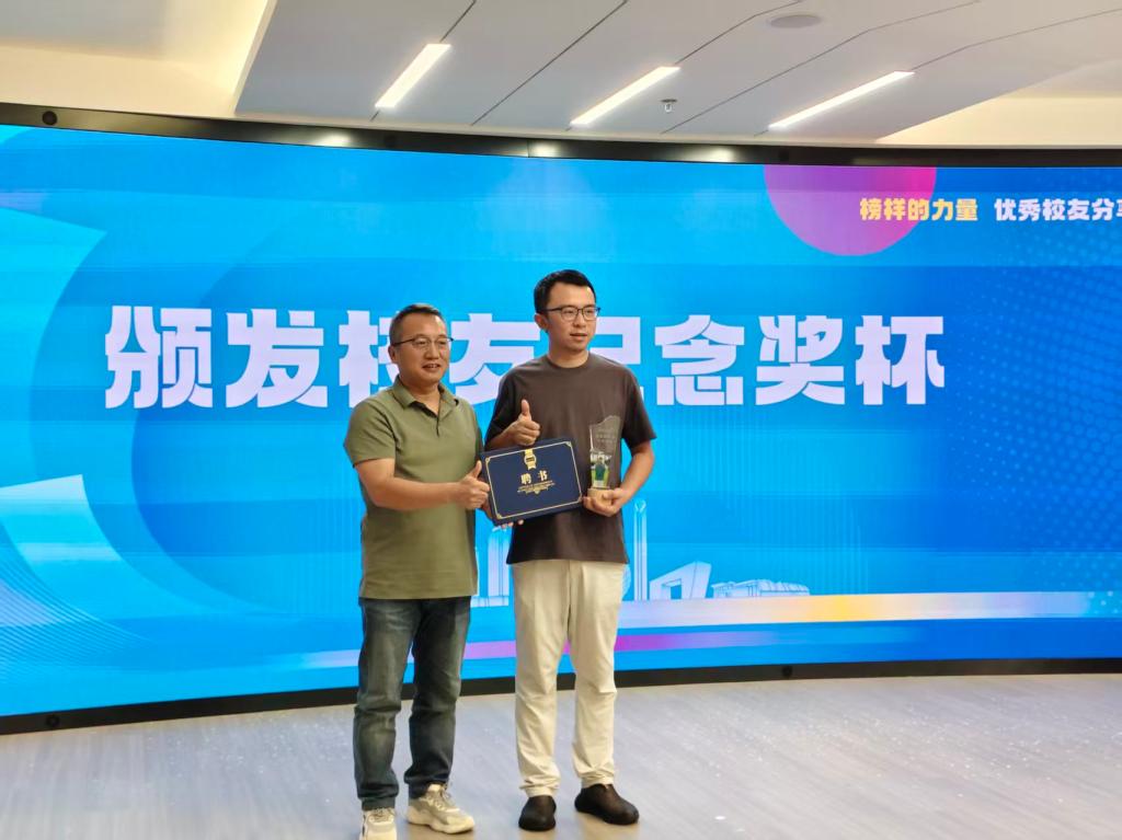 互动环节,师生们踊跃提问,刘欣细致解答师生关于“互联网创业机遇”“专业与职业衔接”等问题。随后,班主任张宏波老师代表学院为刘欣颁发校友纪念奖杯,表彰其行业成就与榜样贡献。最后全体参会人员合影留念。