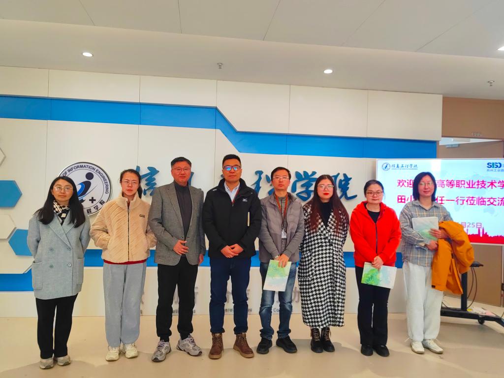11月25日下午,苏州高等职业技术学校电子工程系主任田小强率教学骨干团队到访我校信息工程学院。双方围绕教材改革创新、国家资源库搭建等核心议题展开深度研讨,我校信息工程学院党支部书记、院长刘正,网络与通信技术系系主任张运嵩以及相关骨干教师接待来访。