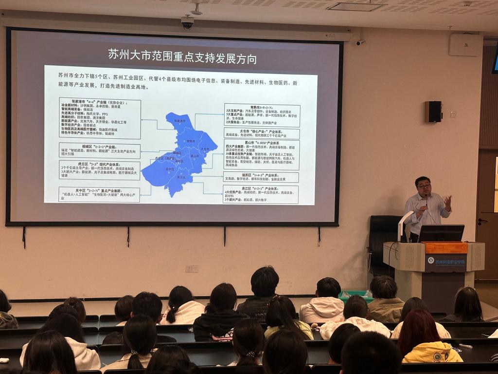 讲座中,羊箭锋聚焦苏州及长三角产业布局,解读了苏州工业园区新一代信息技术发展图谱,介绍苏州大市围绕电子信息等产业打造先进制造业高地的规划,以及环太湖科技创新圈的集聚效应。结合国务院相关意见,重点分析了无人化装备、人工智能、轻量化人工智能三大核心发展方向。针对专业应用与职业前景,羊箭锋结合苏州大学在研项目与案例,如国防领域的“大视场高分辨率多尺度图像探测系统”、民用的周庄游船监控和长江白鳍豚保护区防控,以及反无人机应用等,多方位展示了轻量化人工智能的广泛落地。