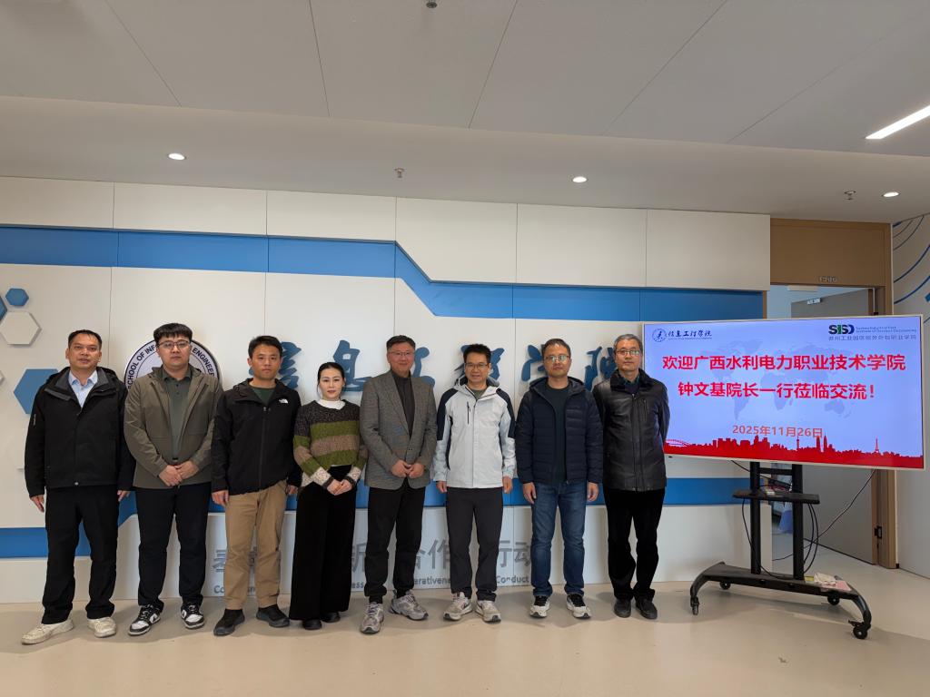 11月26日下午,广西水利电力职业技术学院信息工程学院副院长钟文基率领教学骨干团队到访我校信息工程学院,双方围绕产教深度融合、专业建设优化、技能大赛备赛等核心议题展开深入研讨,学院党支部书记、院长刘正,副院长蒋建峰以及相关系主任接待来访。