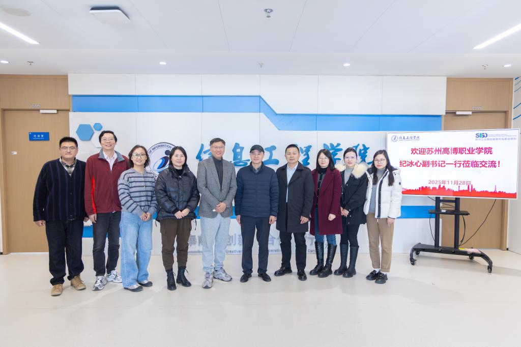 为进一步加强校际合作,促进党建与教育教学工作深度融合,11月28日,苏州高博职业学院艺术与建筑学院党总支副书记、副院长纪冰心一行到访信息工程学院。信息工程学院党支部书记、院长刘正,副书记、副院长张趁香及相关老师接待来访。