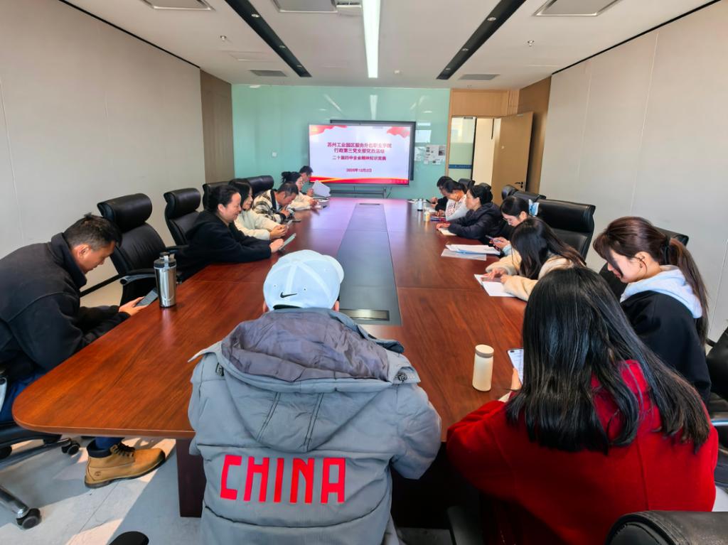 为深入学习贯彻党的二十届四中全会精神,推动全会精神入脑入心,12月3日,行政第三党支部在若水楼1607会议室举办了以“学习全会精神、凝聚奋进力量”为主题的知识竞赛活动。行政第三党支部全体党员积极参与,活动现场气氛热烈,成效显著。