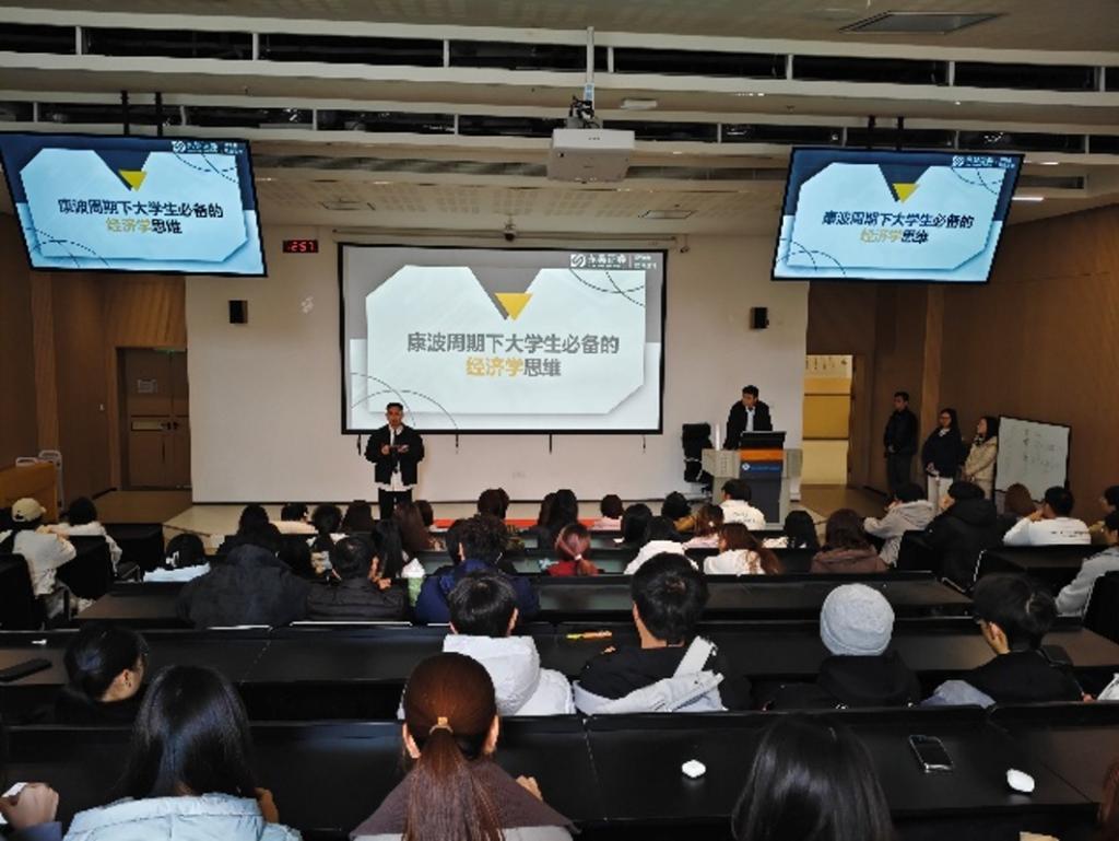 讲座开始,吴家城说,在全球经济格局深度调整、科技革命加速演进的时代背景下,经济周期波动已成为影响行业走向与个人发展的重要因素。大学生作为国家未来建设的主力军,亟须培养前瞻性思维和周期意识,从而在变局中明确方向、在机遇中稳健成长。