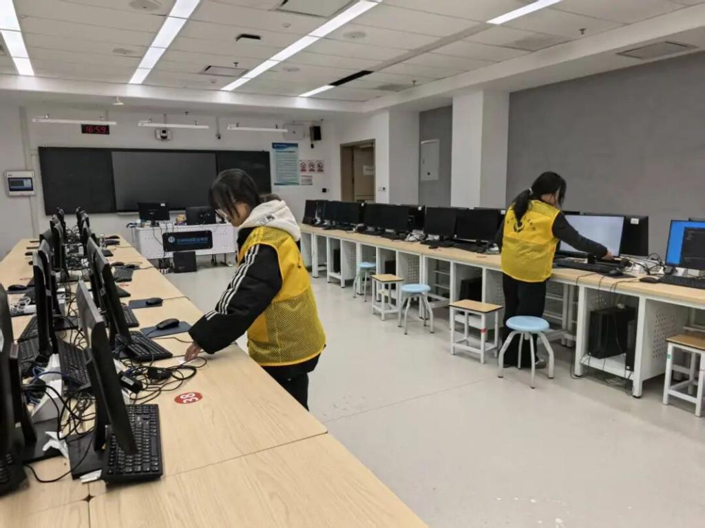 11月,学院105余人次学生走进医院,在智能设备辅导、秩序维护、助老关怀中贡献青春力量。他们不仅缓解了患者就医的实际困难,更在“人民至上、生命至上”的一线课堂里,深刻体悟奉献与大爱。此外,学院将志愿服务与劳动教育、职业素养培育深度融合,定期组织268余人次学生维护实训教学环境。在设备保养、隐患排查、规范归置的细节中,学生们锤炼出一丝不苟、追求卓越的品格。