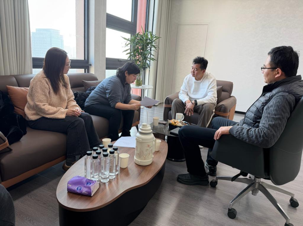 走访期间,张杨一行分别与两家企业的负责人——苏州鑫杰燿网络科技有限公司总经理姜涛、苏州柯特妮信息技术有限公司总经理梁璐瑶及企业骨干人员座谈。姜涛与梁璐瑶结合各自企业的业务布局与行业发展趋势,介绍了企业对数字艺术专业人才的能力需求,同时高度肯定了学院实习生的专业素养与工作态度。校企双方聚焦学生培养模式优化,探讨“岗课赛证”融合路径,明确强化学生项目实战能力与职业素养的培养方向;针对项目引进与管理,达成共建校企联合项目库的共识,推动企业真实项目进课堂;在课堂教学改革方面,企业方建议增设数字化工具应用、内容创新设计等课程模块,助力教学内容与行业标准精准对接。