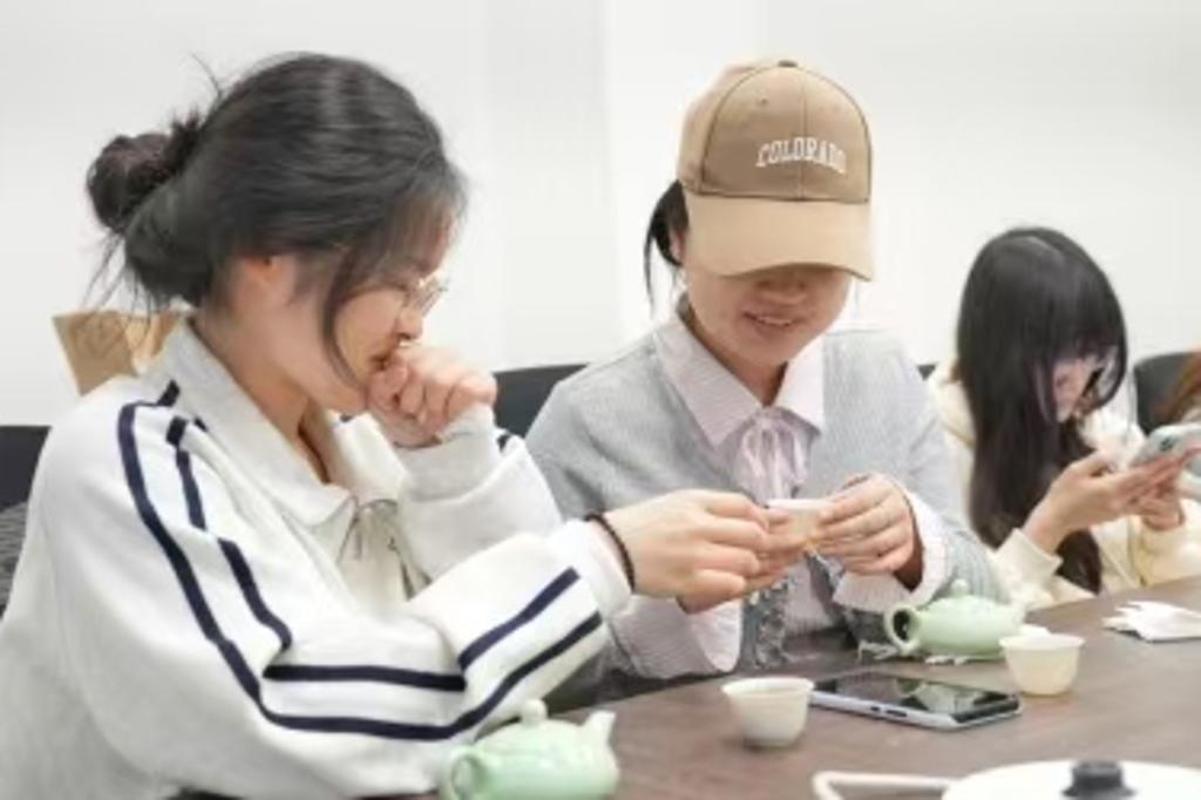 分享环节,参与学生静心品饮,慢品碧螺春的茶汤滋味,感受其鲜爽醇厚、回甘持久的独特口感,并围绕品茶感受、茶艺体验、文化感悟等内容展开交流。大家在细品茶香的过程中,静心体悟茶文化的精神内核,在沉浸式体验中接受中华优秀传统文化的熏陶,提升文化修养与心境境界。