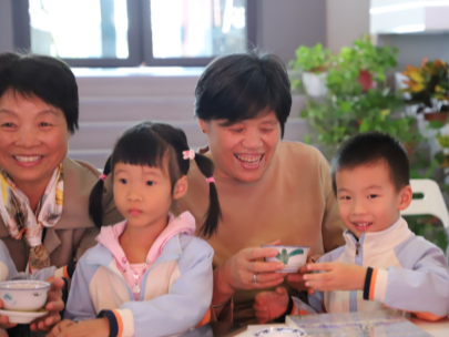 最后,文景幼儿园的孩子们为爷爷奶奶献上《中华孝道》手势舞。在“巧手制囊”“墨香传承”“康乐同练”等环节里,祖孙一起做香囊、练八段锦、拍合影,老人们的笑声成了现场最动听的声音。