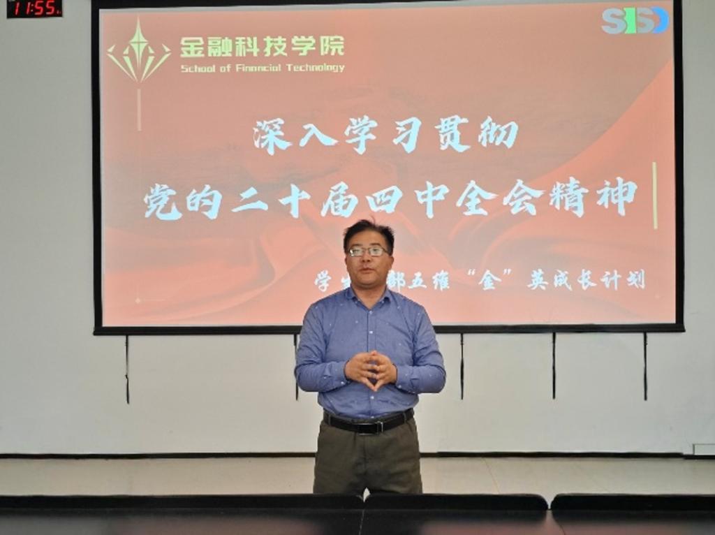 为引导学生干部深入学习贯彻党的二十届四中全会精神,激发青年使命担当,12月5日,金融科技学院在若水楼308举办专题培训,学院党支部副书记、副院长谷瑞、全体辅导员、学院学生会骨干、各班级班长及团支书等参加了此次培训。