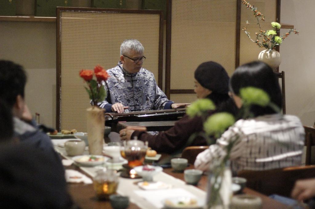 在古琴茶艺欣赏环节中,朱正明弹奏了《渔樵问答》《鸥鹭忘机》等经典名曲,悠扬琴声萦绕现场,营造出宁静悠远的文化意境。朱正明还结合琴曲内涵与茶艺精髓,向参与师生阐释中华美育“以美润心、以美化人”的独特价值,进一步坚定“慢品生活、深耕教育”的生活哲学与职业追求。