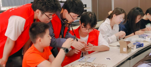科普课堂后,志愿者们与社区居民进行了精彩的互动问答,激发了大家对人工智能及航天知识的浓厚兴趣。随后,以家庭为单位的航天模型DIY制作活动更是将现场气氛推向高潮,志愿者们和现场参与家庭一起亲手制作航天模型。社区居民不仅学习了航天知识,还感受到了科技带来的乐趣。