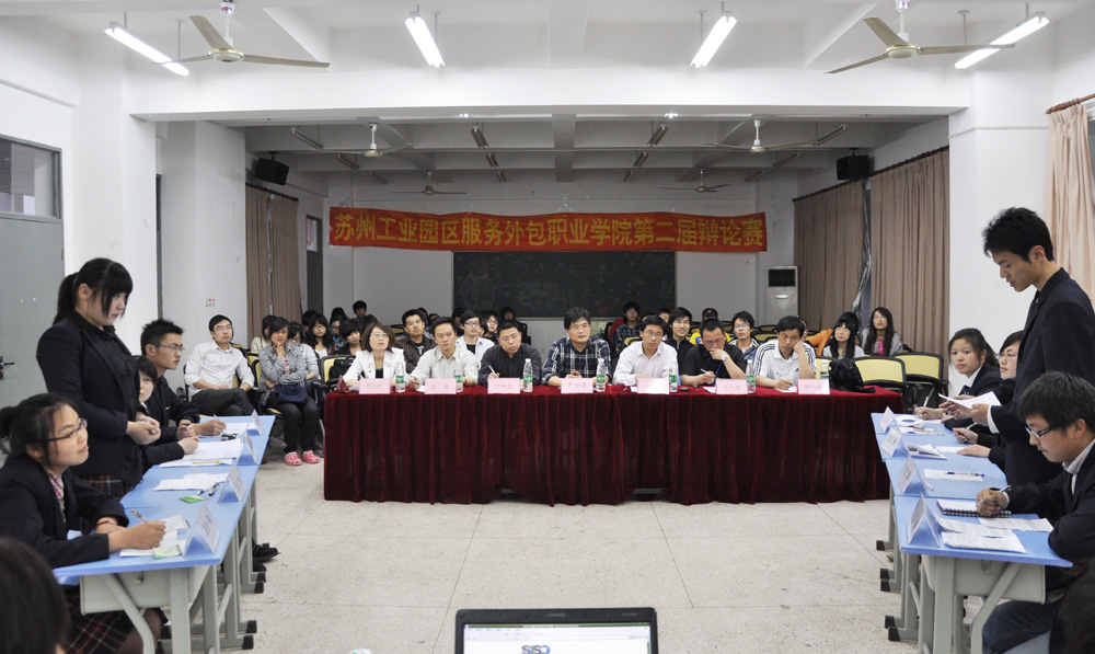 5月6日晚,苏州工业园区服务外包职业学院第二届大学生辩论赛总决赛暨颁奖典礼在教学楼1402教室隆重举行。党委副书记兼副院长严世清、各系部主任及相关处室领导出席辩论赛并担任评委。