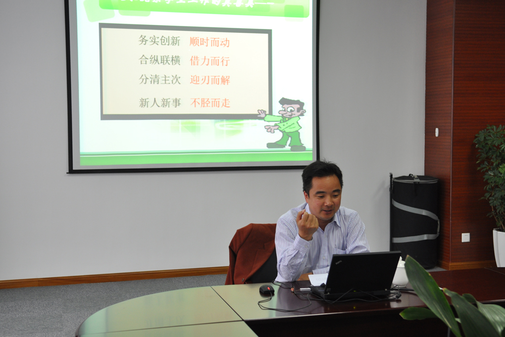 一个半小时的时间内,查书记结合其多年来从事学生工作的丰富经验,从“务实创新、顺时而动”,“合纵联横、借力而行”,“分清主次、迎刃而解”,“新人新事、不胫而走”四个方面畅谈如何增强高校学生工作的实效性问题。査书记指出,春夏秋冬,四季更迭,学工干部应该按照不同时段的具体特征和重点任务,弘扬主旋律,提倡多样化,唱响大学校园别具特色的四季之歌,创新和发展大学文化。“春之声”、“夏之旅”、“秋之韵”、“冬之暖”,在按规律唱响四季之歌的同时,査书记提醒大家在具体的工作中,既要唱老歌,又要谱新曲,要树立发展意识。在讲到学生工作如何抓重点时,查书记“红绿相映”的“西瓜”工作理念给大家留下了深刻的印象,他强调学生工作要坚持育人为本,德育优先,提升学生的内在素质;同时也要强调坚持以人为本,深入进行素质教育,塑造学生的外在形象。