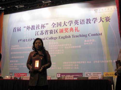 5月9日,在教育部高等学校外语专业教学指导委员会、高等学校大学外语教学指导委员会以及上海外语教育出版社共同主办的首届外教社杯全国大学英语教学大赛”江苏赛区比赛上,我院公共学科部周怡老师荣获高职听说组三等奖。