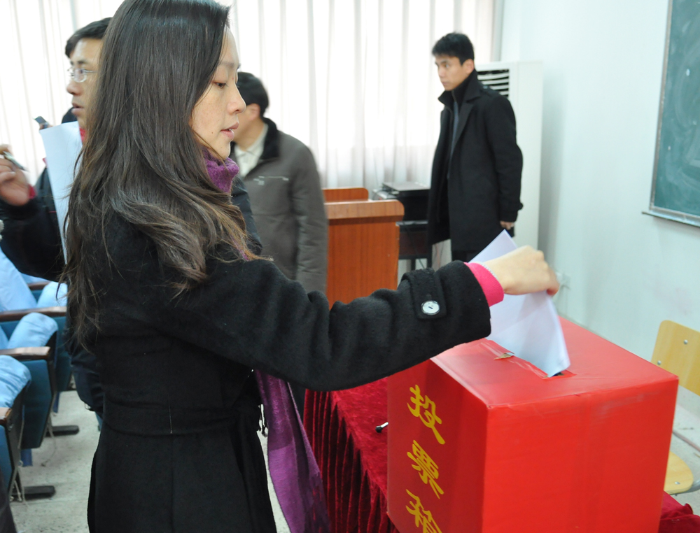 随后所有与会人员都按照要求,认真、公正、公平的对院级领导进行了无记名民主测评投票。