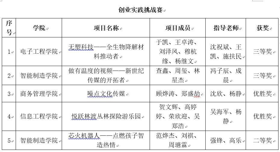 经过前期二级学院推荐与学校精心组织辅导,我校共有19个项目入围了决赛,并在现场展评答辩中取得了一等奖7项、二等奖4项、三等奖6项、优胜奖2项的好成绩,充分展示了我校学生创新创业精神与实践能力。我校与会的创新创业工作团队成员也抓住这次良好机遇与全市各校创新创业团队学习交流,进一步拓展了视野,增长了见识。
